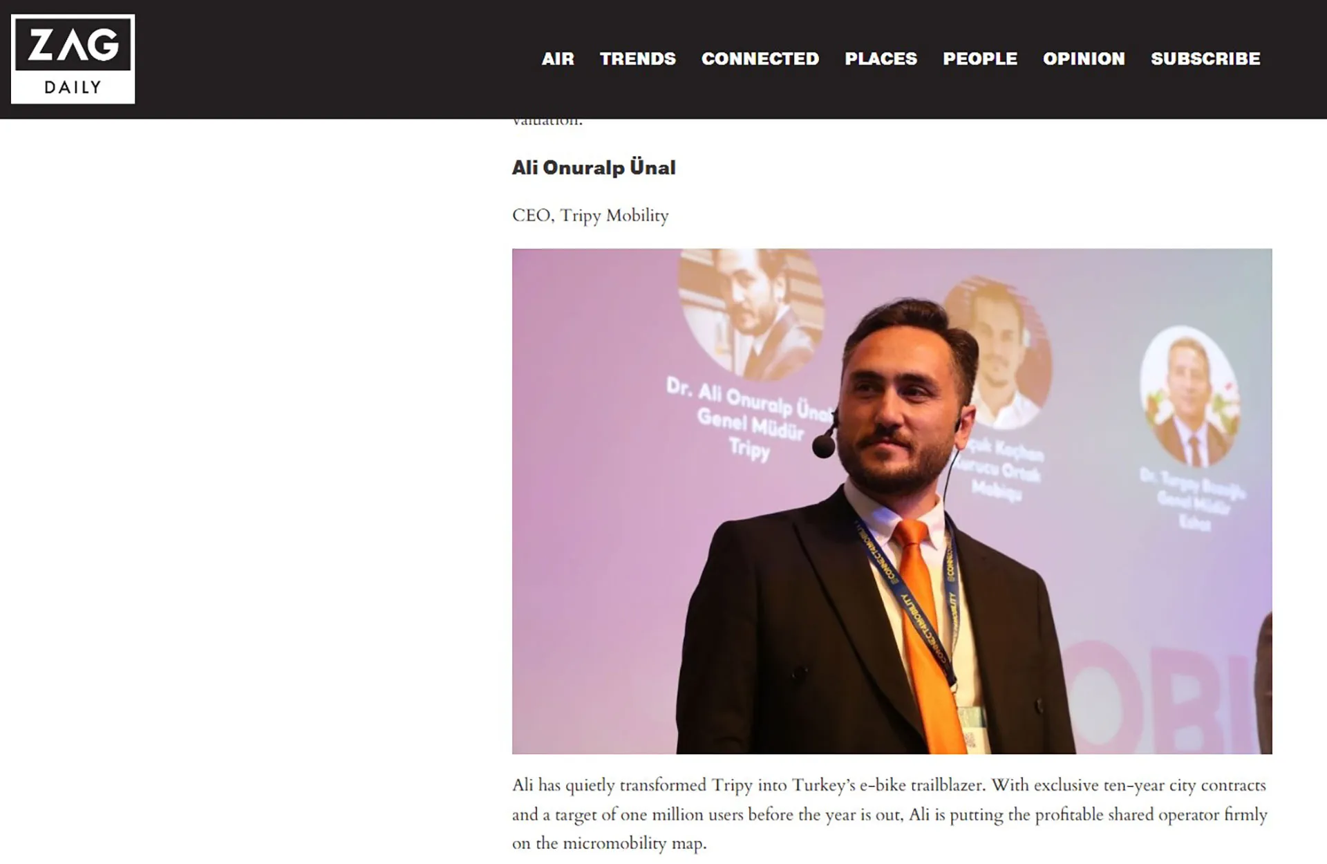 Bu yıl açıklanan listede Türkiye’den yalnızca Tripy CEO’su Dr. Ali Onuralp Ünal yer aldı. Dr. Ünal’ın böyle prestijli ve uluslararası bir seçkide yer bulması, Tripy’nin kısa sürede ulaştığı etkiyi gözler önüne sererken, Türkiye’nin sürdürülebilir ulaşım alanındaki yükselen ivmesini de öne çıkarıyor.