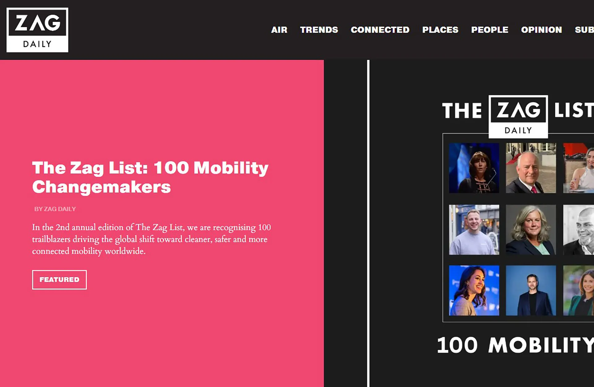 Sürdürülebilir ulaşım ve mikro-mobilite alanında dünyanın en güçlü yayınlarından biri olarak kabul edilen Zag Daily, bu yılın The Zag List 2025 seçkisini yayımladı. Mikro-mobilite, şehir içi taşımacılık, temiz enerji altyapıları ve yeni nesil ulaşım teknolojileri üzerine yaptığı kapsamlı analizlerle bilinen Zag Daily, küresel politika yapıcılar, kamu yöneticileri ve sektör liderleri tarafından sıkça referans alınan bir kaynak niteliğinde. Her yıl açıklanan “En Etkili 100 Kişi” listesi, sektörün geleceğini şekillendiren isimleri bir araya getiriyor.